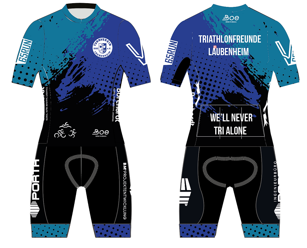 Willkommen zum Triathlonfreunde Laubenheim Teamstore. Der Store bleibt bis zum 26. Oktober 2025 geöffnet. Lieferzeitraum ist Ende November. Ein Umtausch ist bei individuell gestalteter Kleidung ausgeschlossen, Garantie und Gewährleistung gelten regulär. Versandkosten ab 200,-€ frei.